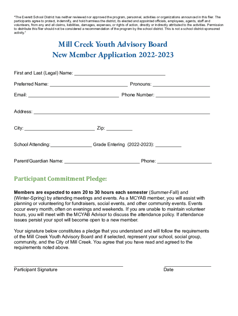 Get the free New Member Mill Creek Youth Advisory Board Application 2022-2023