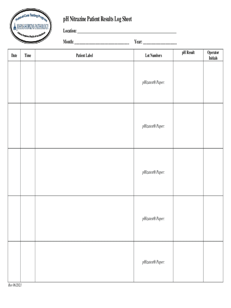 Get the free pH Nitrazine Testing using pHizatest Paper Fast Facts - pathology jhu