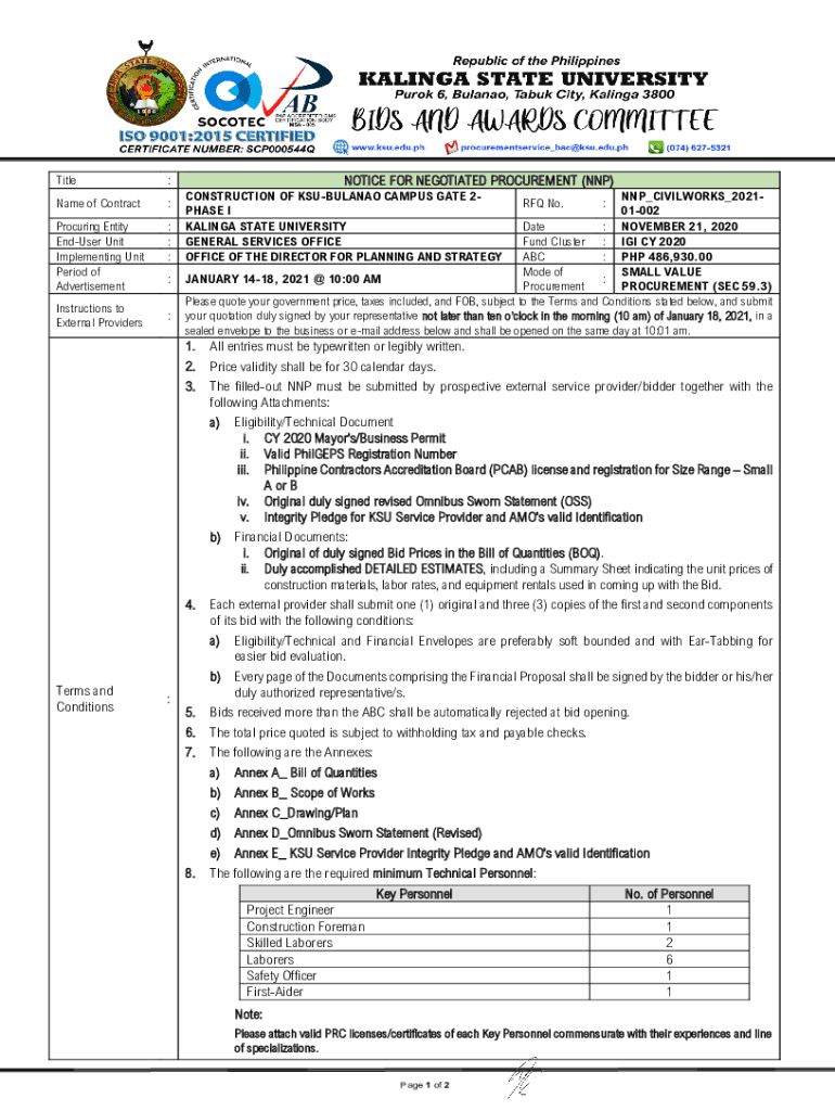 Get the free Notice for Negotiated Procurement (NNP)