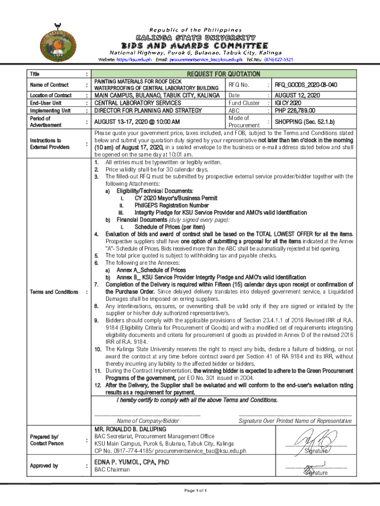 KARINA STATE UNIVERSITIES AND AWARDS COMMITTEETitleREQUEST FOR QUOTATION:PAINTING MATERIALS FOR ROOF DECK