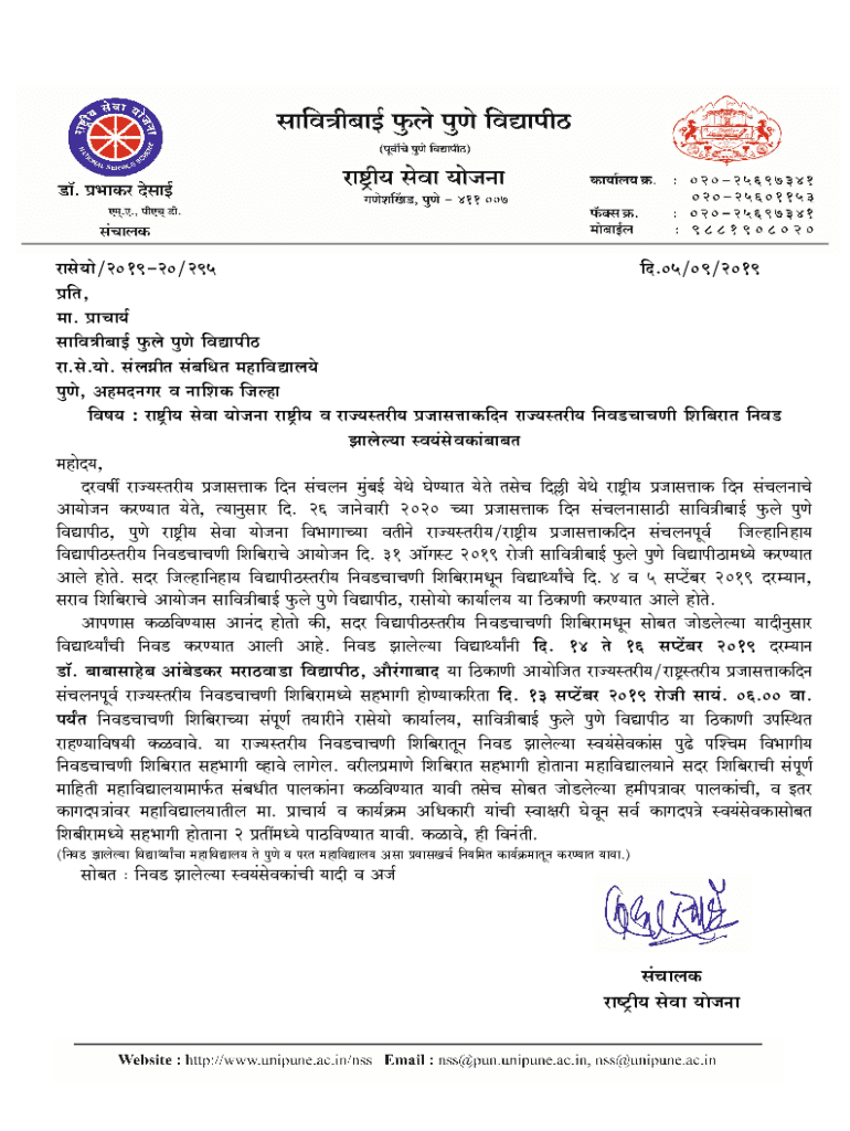 Get the free NSS Circulars: SRDNRDState Level Selection Camp Letter