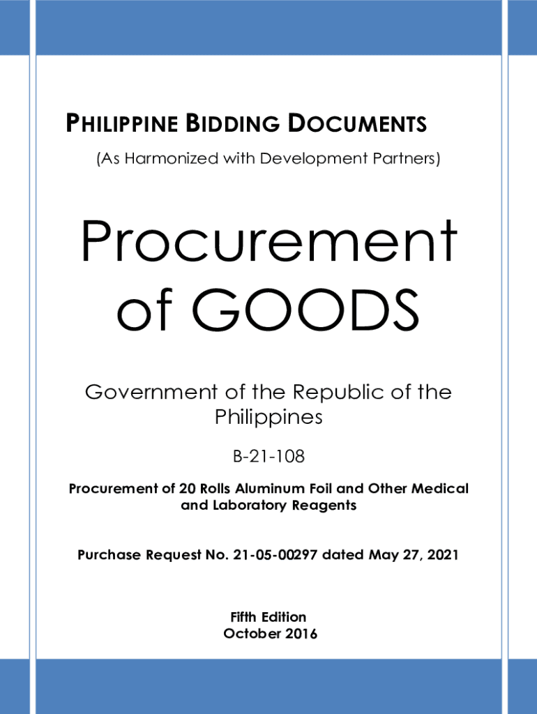PHILIPPINE BIDDING DOCUMENTS (As Harmonized with Development Partners)Procurement of GOODS Government of the Republic of the Philippines B21108 Procurement of 20 Rolls Aluminum Foil and Other Medical