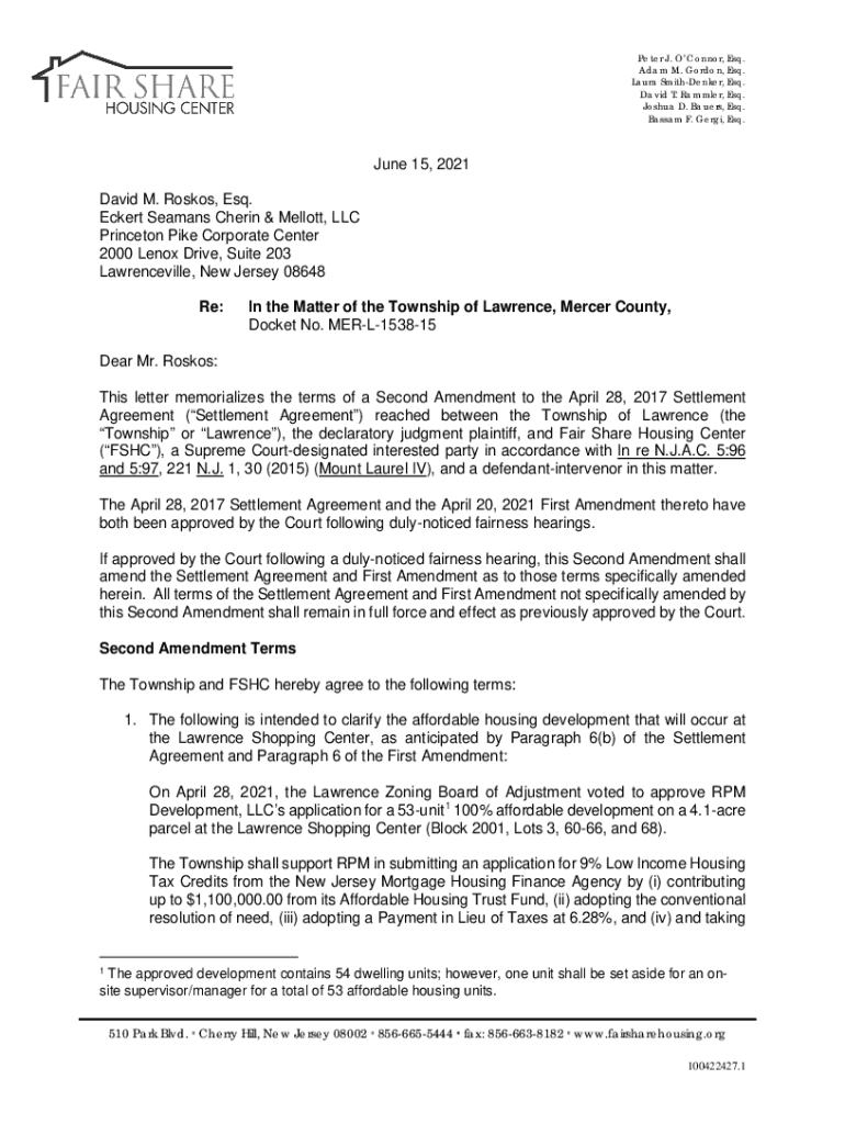 Peter J. O'Connor, Esq. Adam M. Gordon, Esq. Laura SmithDenker, Esq. David T. Rambler, Esq. Joshua D. Bauer's, Esq. Assam F. George, Esq. June 15, 2021, David M. Rocks, Esq. Expert Seaman's Cherie