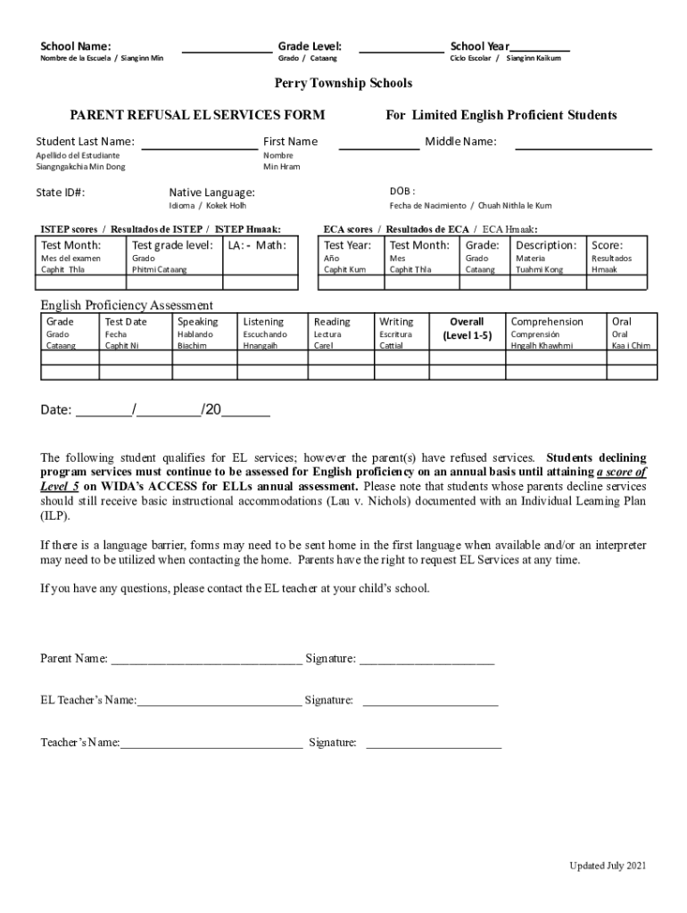 PARENT REFUSAL EL SERVICES FORM