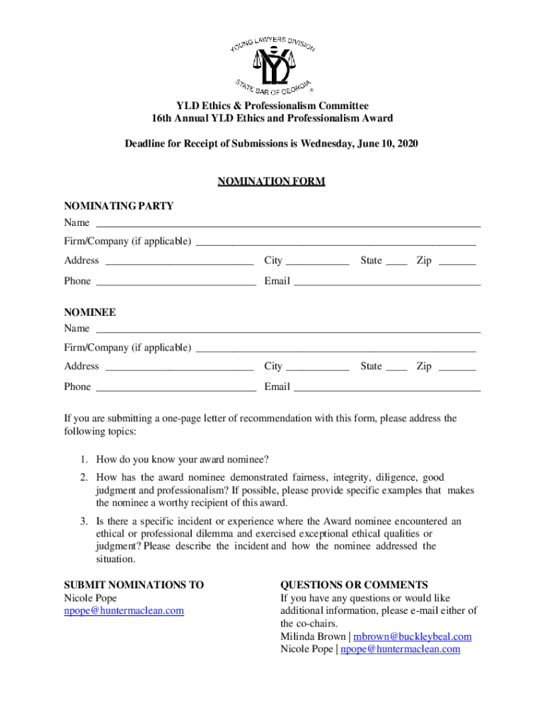 Members of the Young Lawyers Division who are actively involved in committee activities are required to file reports on their activities.