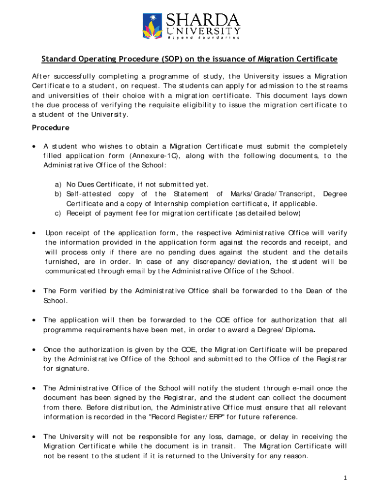 5Standarrd Operating Price endure (SO OP) on the issuance CE of Migration Certificate After successfully completing A g a program ammo of study, s the e University issues a Migration on C Certificate