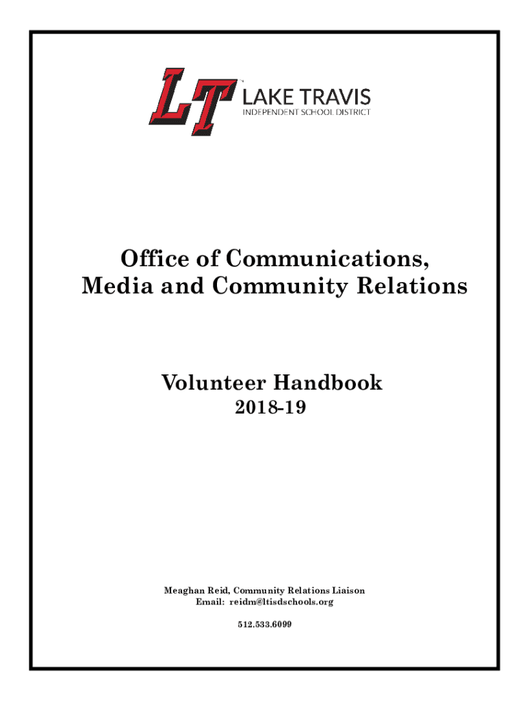 LAKE TRAVIS INDEPENDENT SCHOOL DISTRICTOffice of Communications, Media and Community RelationsVolunteer Handbook 201819Meaghan Reid, Community Relations Liaison Email: reidm@ltisdschools.org 512.533.6099LAKE