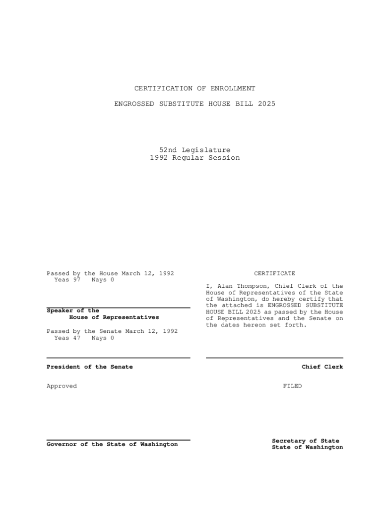 ENGROSSED SUBSTITUTE HOUSE BILL 202552nd Legislature