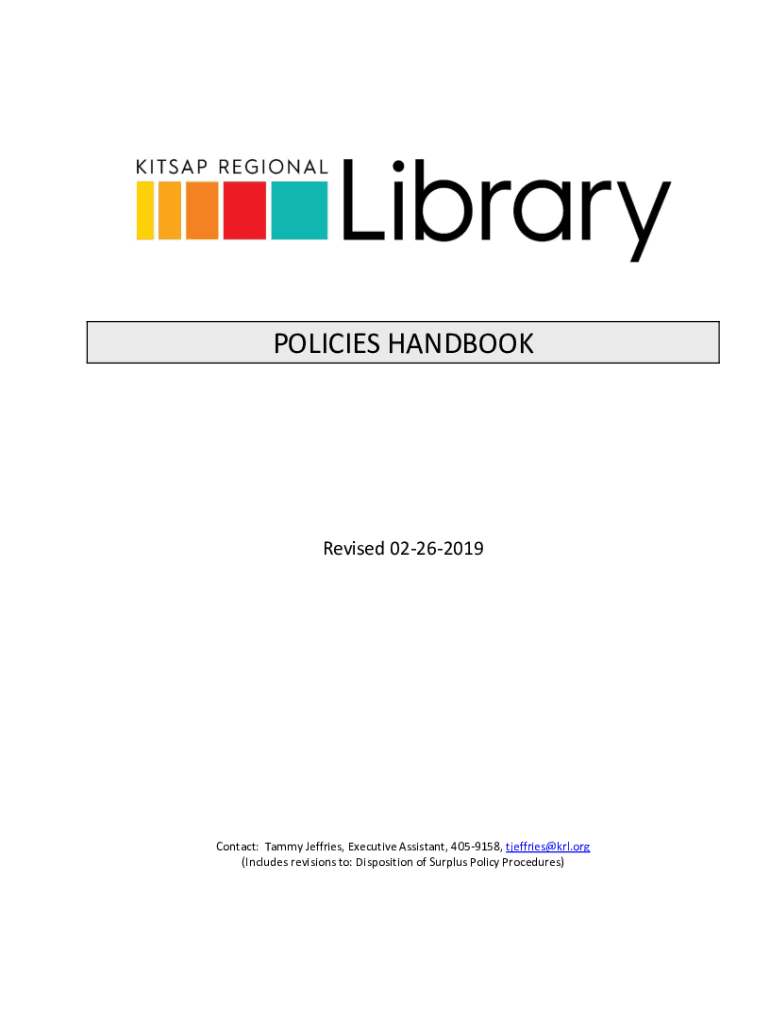 POLICIES HANDBOOKRevised 02262019Contact: Tammy Jeffries, Executive Assistant, 4059158, tjeffries@krl.org