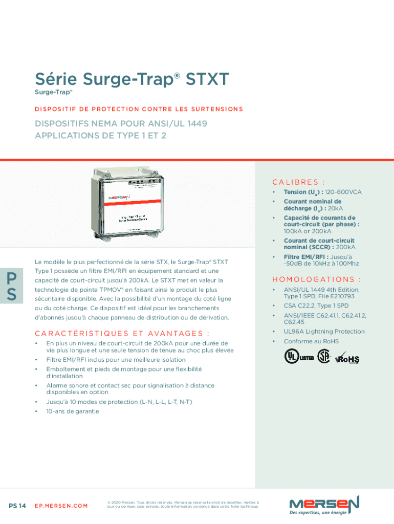 Obtenir le gratuit P S Srie Surge-Trap STXT - Mersen EP