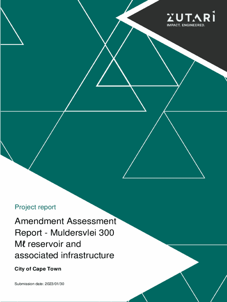 Project reportAmendment Assessment Report Muldersvlei 300 M reservoir and associated infrastructure City of Cape Town Document number 10017570000REPNN0001, Revision numberSubmission date: 2023/01/300.1,