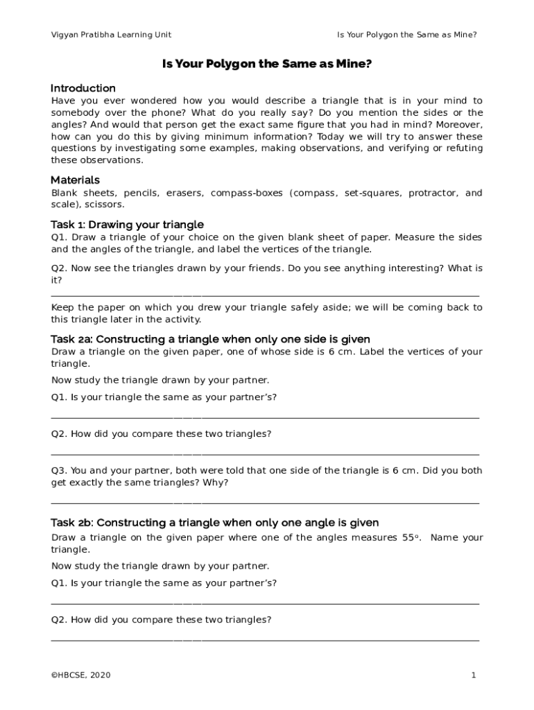 Libyan Patina Learning Units Your Polygon the Same as Mine? Is Your Polygon the Same as Mine? Introduction Have you ever wondered how you would describe a triangle that is in your mind to somebody