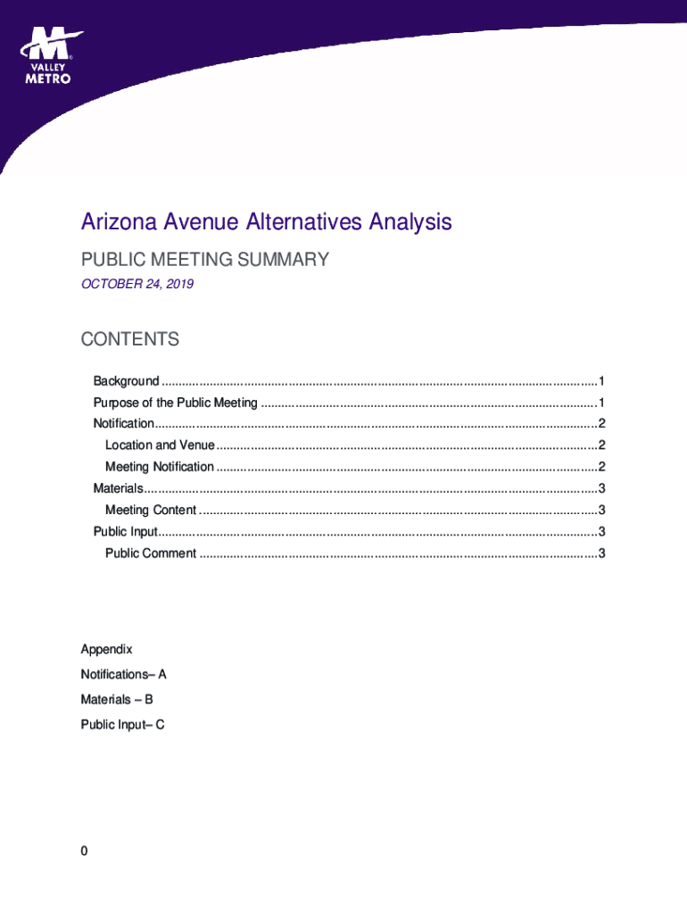 Arizona Avenue Alternatives Analysis PUBLIC MEETING SUMMARY OCTOBER 24, 2019CONTENTS Background ...............................................................................................................................