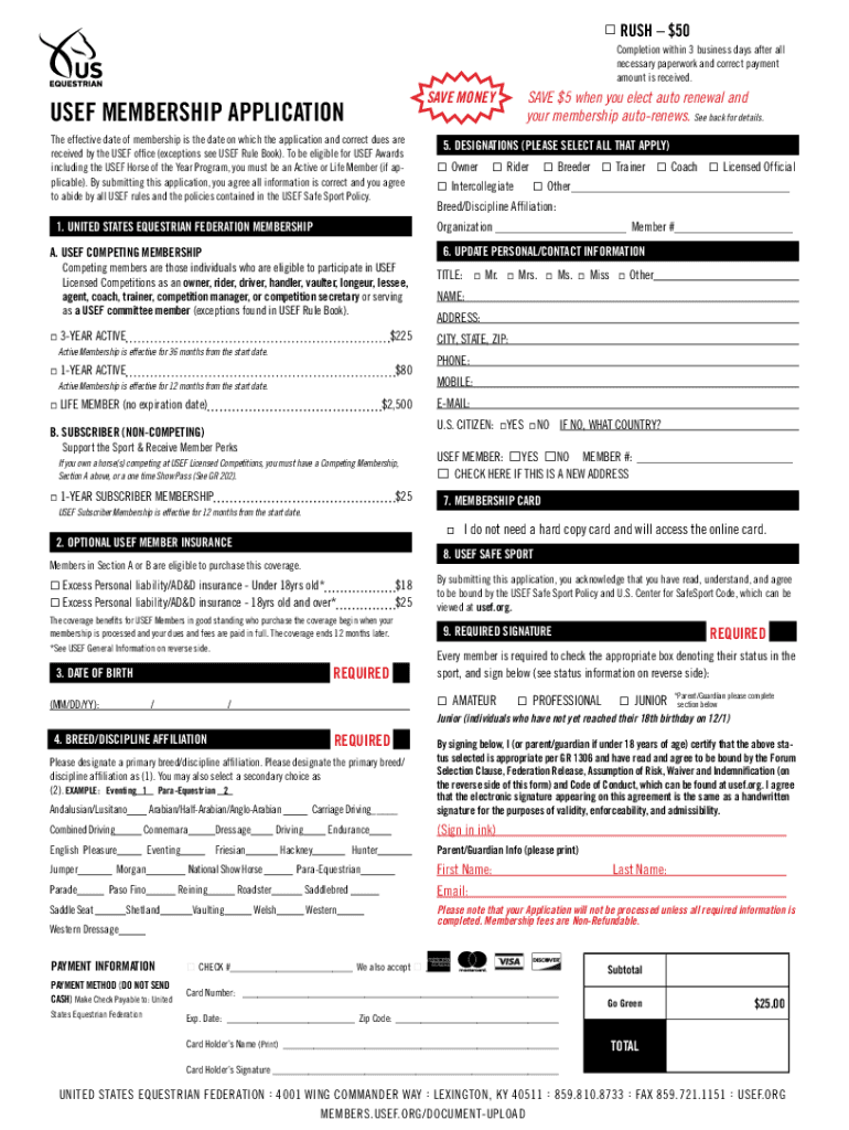 Anyone who wants to participate in USEF sanctioned events or competitions needs to fill out a USEF membership application