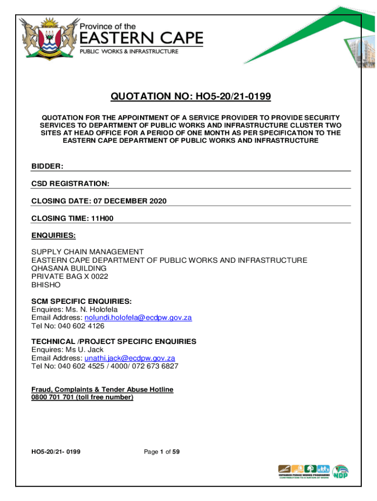 Get the free QUOTATION NO: HO5-20/21-0199 - Eastern Cape Public Works