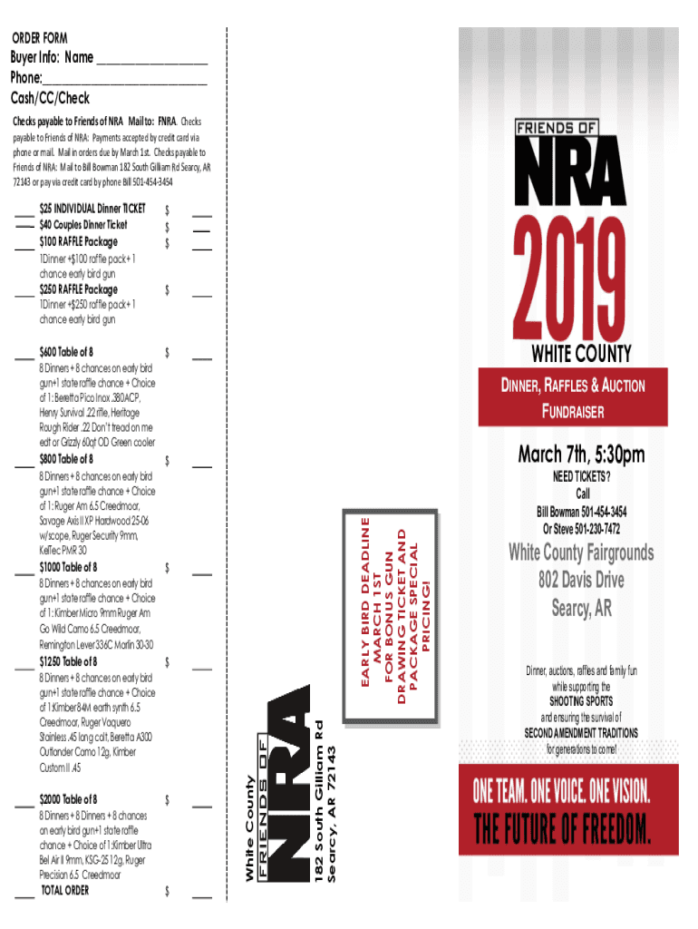 ORDER Former Info: Name ___ Phone:___ Cash/CC/Check Checks payable to Friends of NRA Mail to: NRA. Checks payable to Friends of NRA: Payments accepted by credit card via phone or mail. Mail in orders