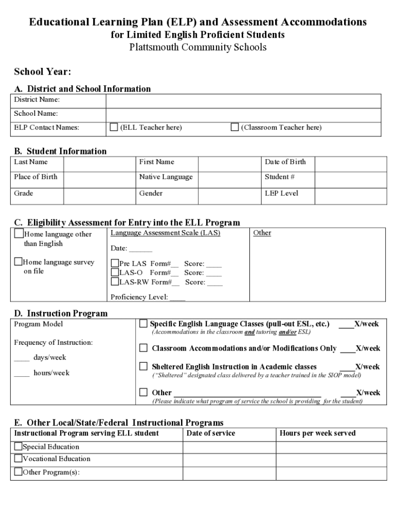 Educational Learning Plan (ELP) and Assessment Accommodations
