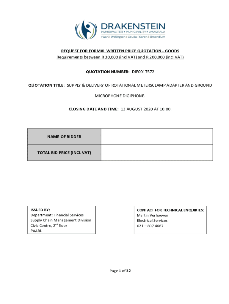 Requirements between R 30,000 (incl VAT) and R 200,000 (incl VAT)
