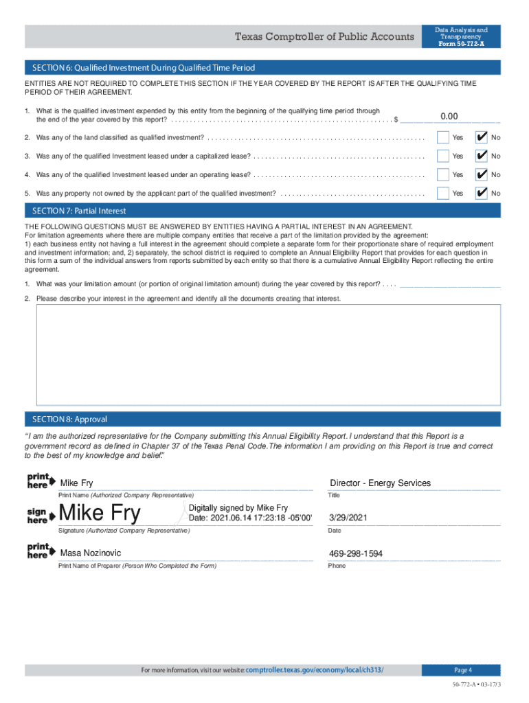 Texas Comptroller of Public AccountsData Analysis and Transparency Form 50772AChapter313AnnualEligibilityReportFormRSECTION1:ApplicantandDistrictInformation 1. Tax year covered by this report: 2020
