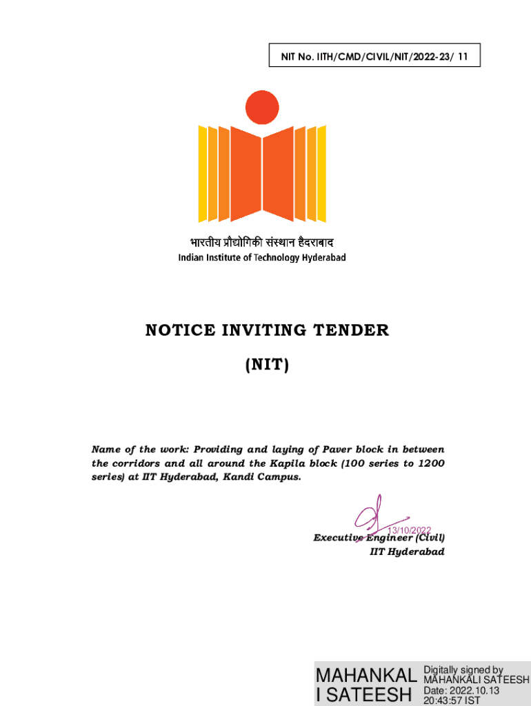 (NIT)Name of the work: Providing and laying of Paver block in between