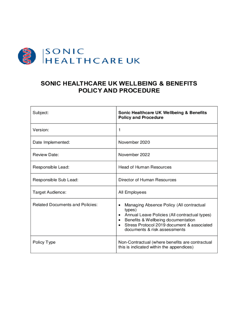POLICY AND PROCEDURESubject:Sonic Healthcare UK Wellbeing & Benefits