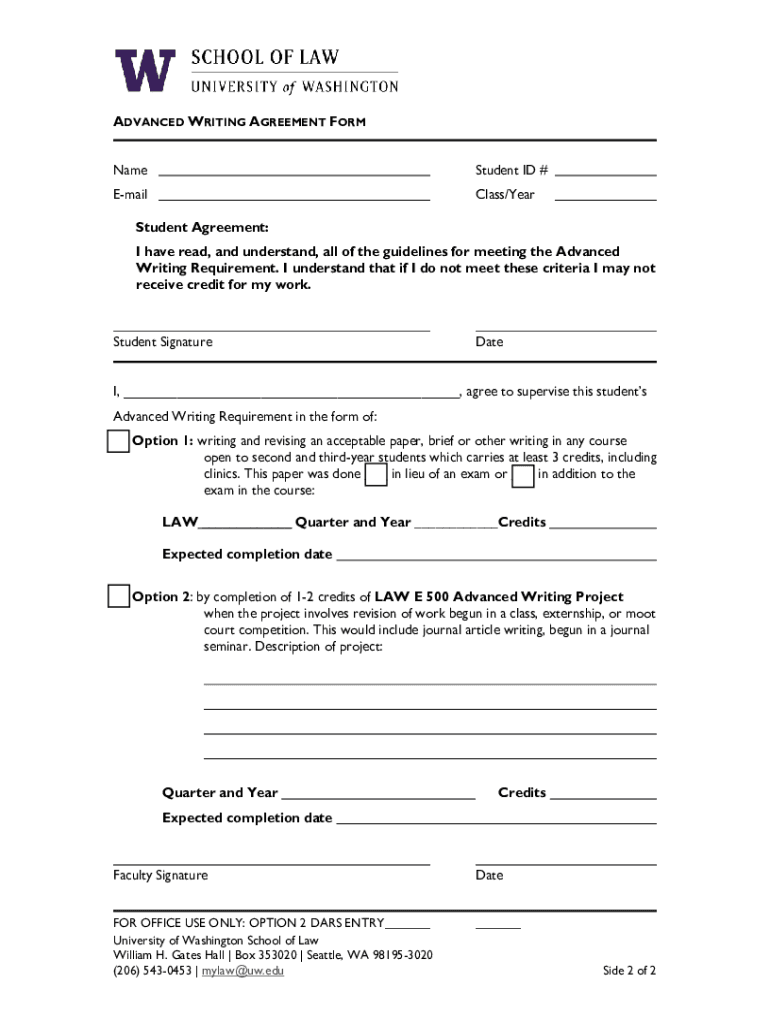 Get the free Advanced Writing Requirement Agreement Form