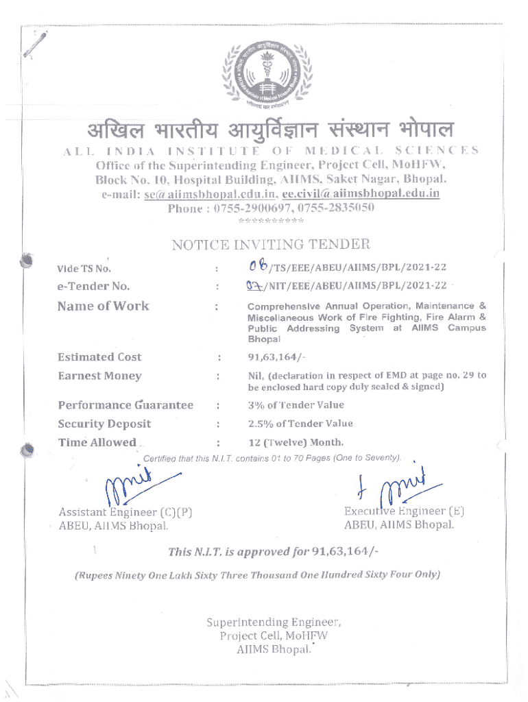 Get the free Name of work: - Comprehensive Annual Operation, Maintenance & Miscellaneous Work...
