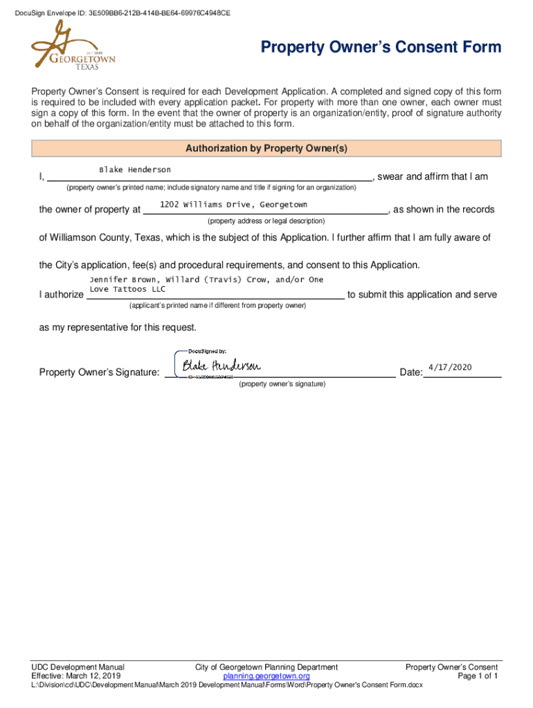 Get the free Property Owner's Consent Form