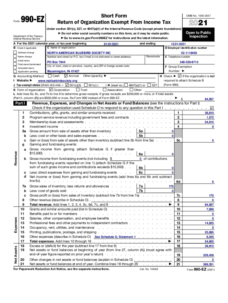 Form990EZShort Form Return of Organization Exempt From Income Tax OMB No. 15450047Under section 501(c), 527, or 4947(a)(1) of the Internal Revenue Code (except private foundations) Department of the