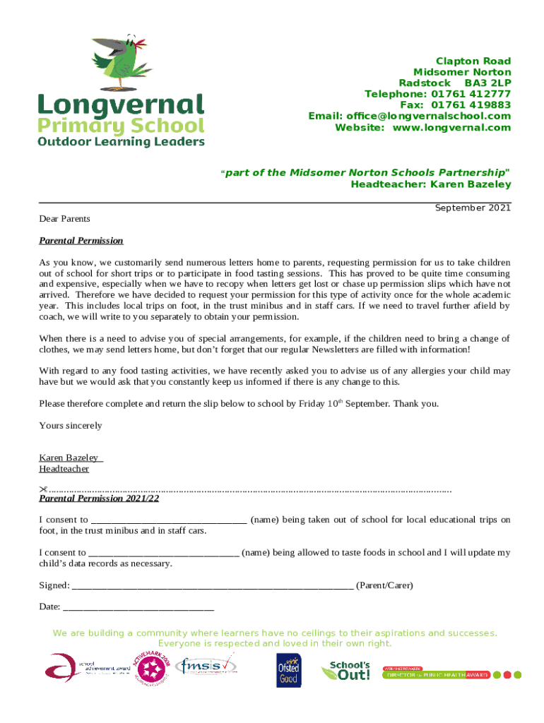 Annual Permission - Midsomer Norton Schools Partnership template instructions