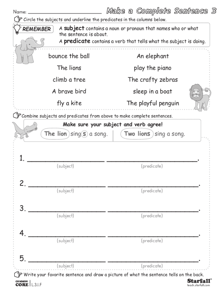 Get the free Grade 3 - Make a Complete Sentence. English Language Arts, ELA