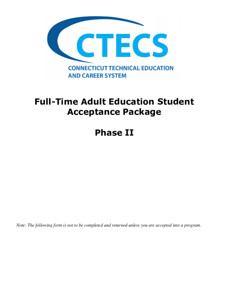 Halftime Adult Education Student Acceptance Package Phase Minute: The following form is not to be completed and returned unless you are accepted into a program. APPENDIX 12APart I: Immunization History: