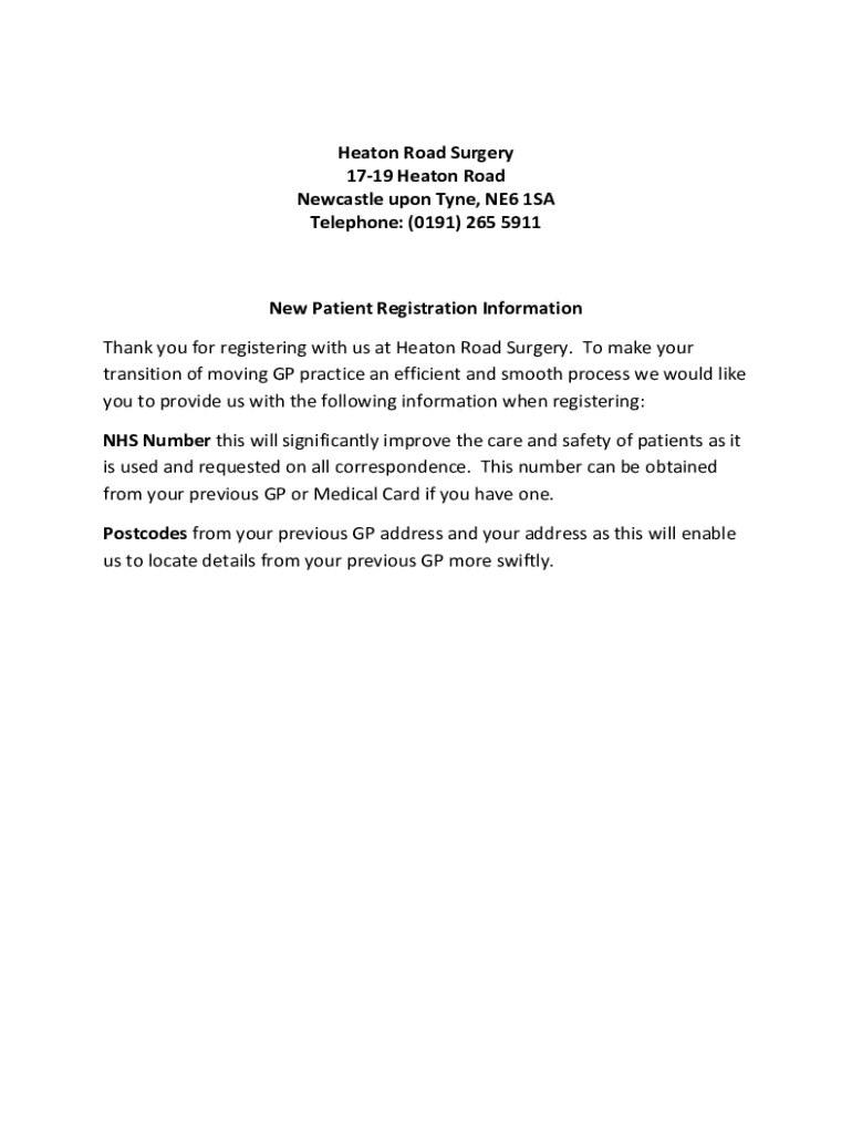 Get the free How to register - Heaton Road Surgery - heatonroadsurgery nhs
