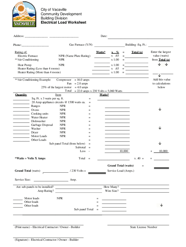 Get the free Electric Load Worksheet for the City of Rocklin.doc