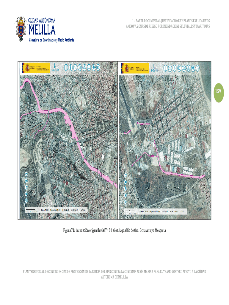 NEXT V. ZONES DE DIEGO POR INUNDATIONS FLUVIAL ES Y MARITIMAS159159Figura 71: Inundation origin fluvial T 50 AOS. ISDA Rio de Oro. Doha Arroyo