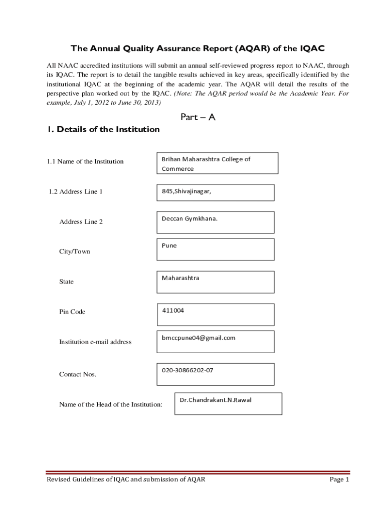 The Annual Quality Assurance Report (AGAR) of the IAC All NAACP accredited institutions will submit an annual self reviewed progress report to NAACP, through its IAC. The report is to detail the tangible