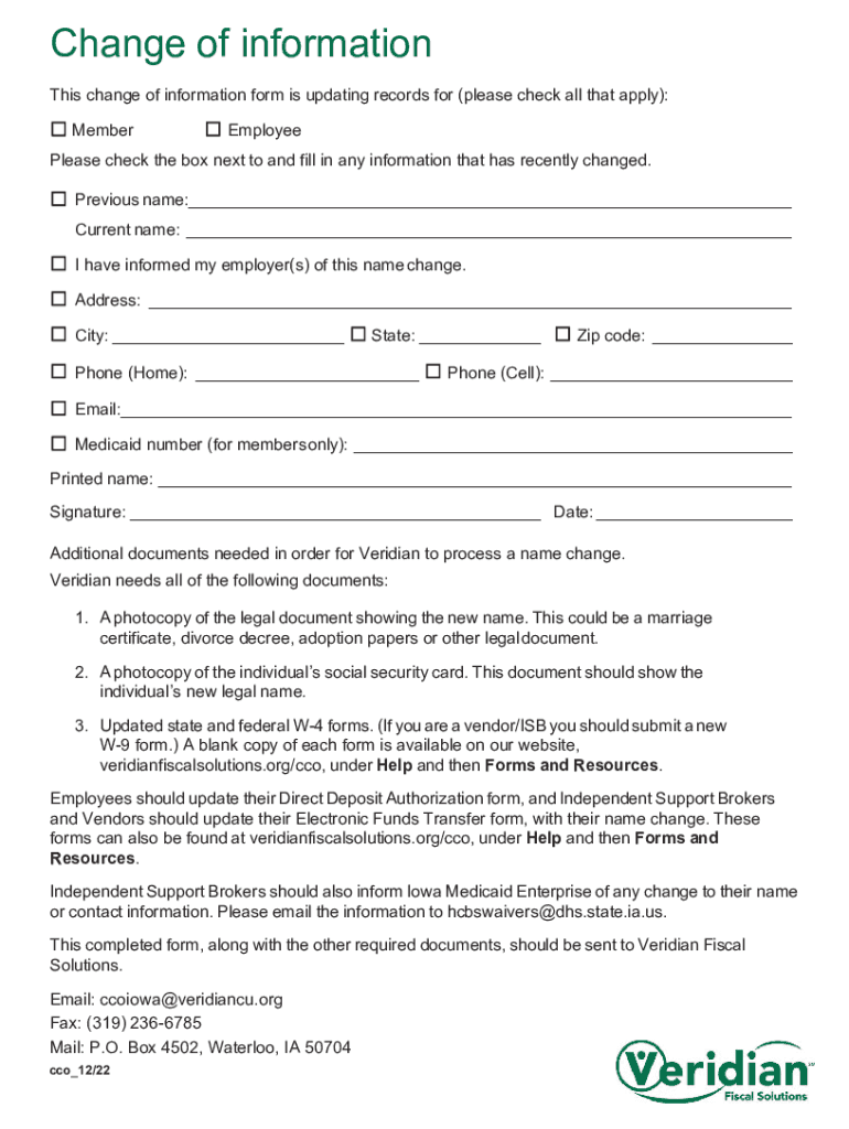 Change of information This change of information form is updating records for (please check all that apply): Member EmployeePlease check the box next to and fill in any information that has recently