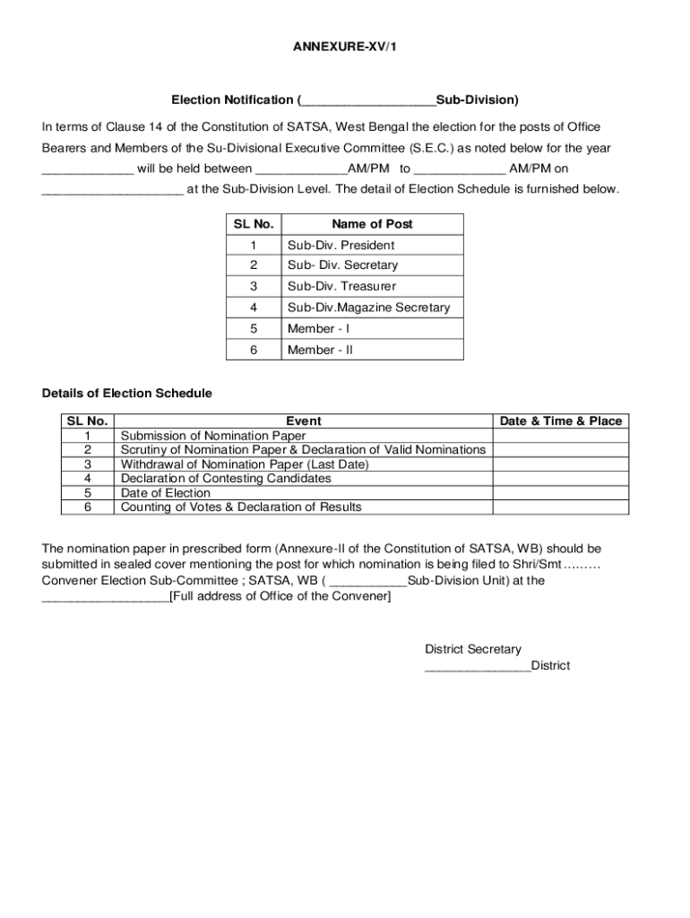 ANNEXUREXV/1Election Notification (___Subdivision)