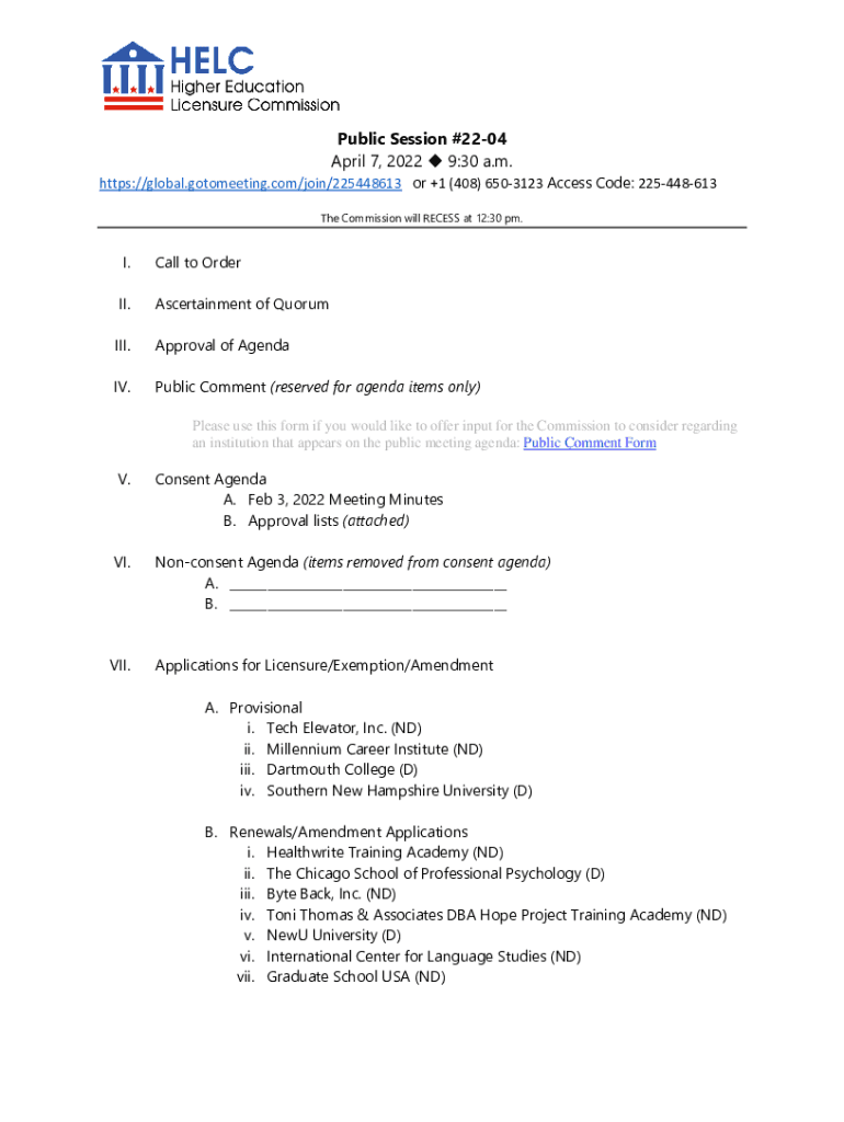 Get the free Public Session #22-04