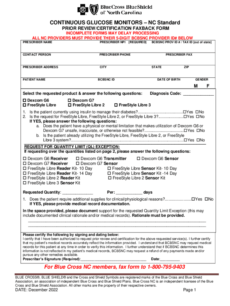 CONTINUOUS GLUCOSE MONITORS NC Standard