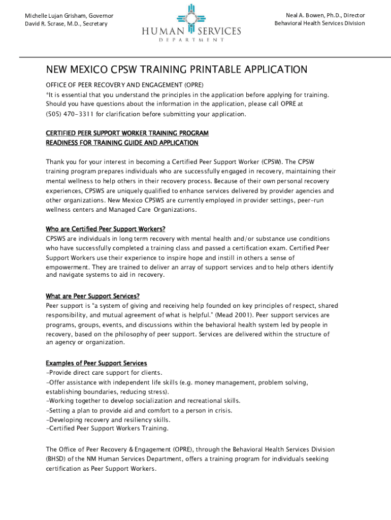 Michelle Lujan Grisham, Governor David R. Scrape, M.D., Secretary Neal A. Bowen, Ph.D., Director Behavioral Health Services Division MEXICO CPS TRAINING PRINTABLE APPLICATION OFFICE OF PEER RECOVERY