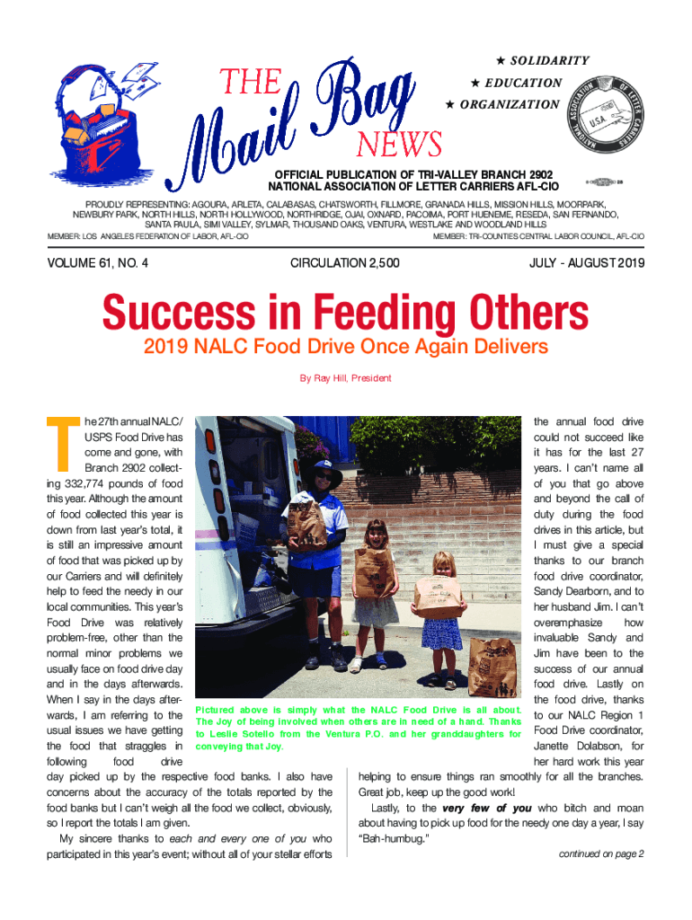 H SOLIDARITY OH EDUCATION H ORGANIC NONOFFICIAL PUBLICATION OF TRIVIALLY BRANCH 2902 NATIONAL ASSOCIATION OF LETTER CARRIERS AFL CIO PROUDLY REPRESENTING: AGO URA, ARL ETA, CALABASAS, HAYWORTH, FILLMORE,