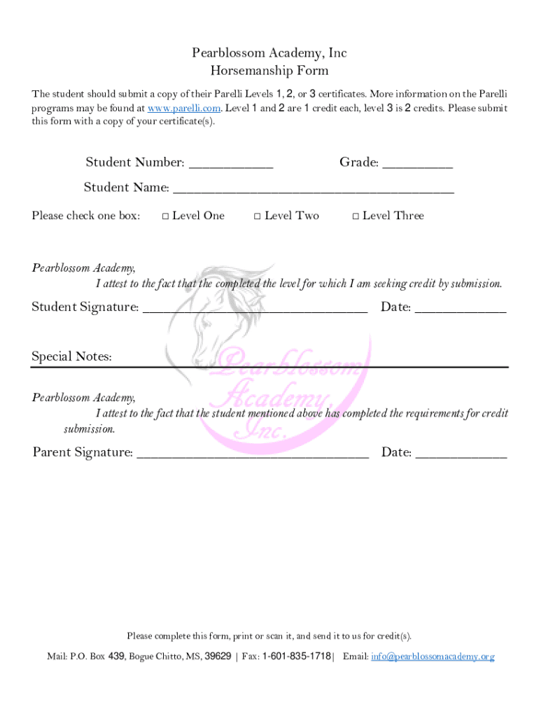 Get the free Pearblossom Academy, Inc Horsemanship Form