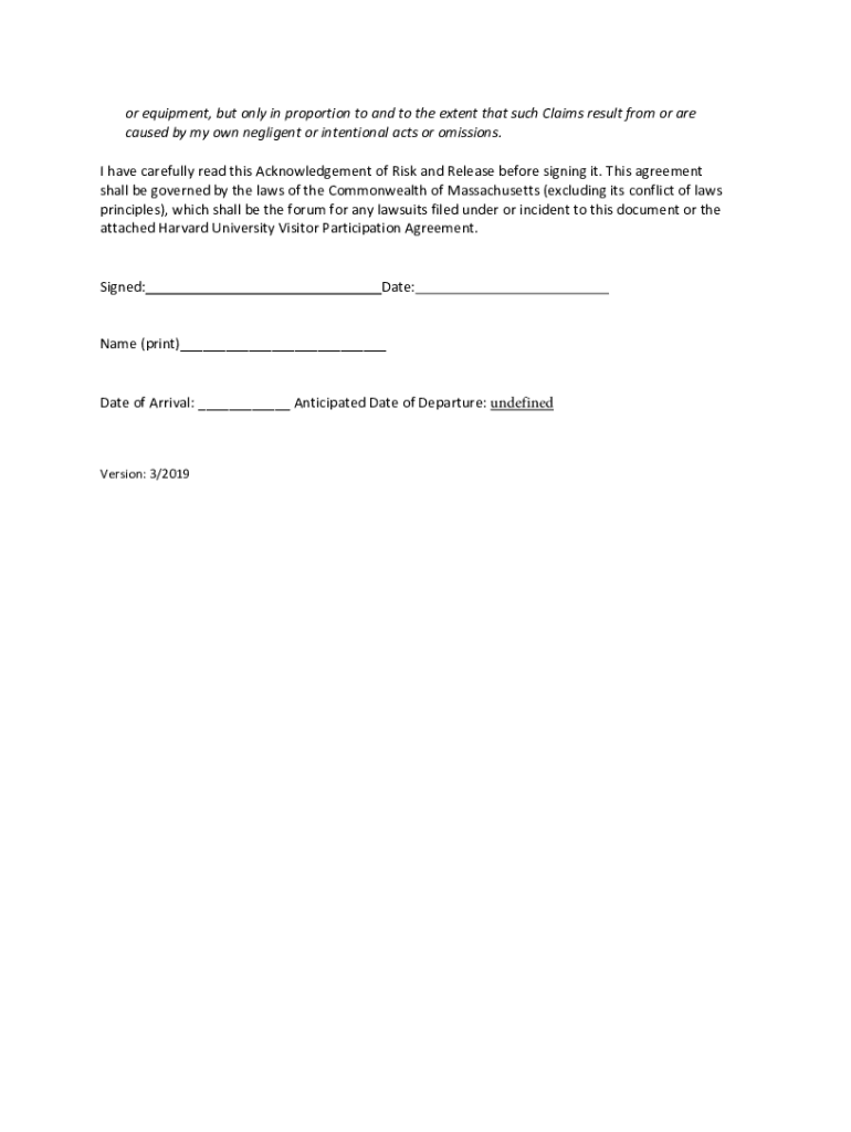 ACKNOWLEDGEMENT OF RISK AND RELEASE for NonHarvard Personnel Using Harvard Research and Instructional Laboratory Facilities THIS IS A RELEASE OF LEGAL RIGHTS PLEASE READ AND UNDERSTAND BEFORE SIGNING
