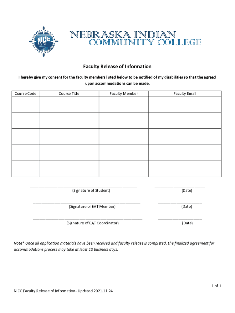 Faculty Release of Information I hereby give my consent for the faculty members listed below to be notified of my disabilities so that the agreed upon accommodations can be made. Course Concourse