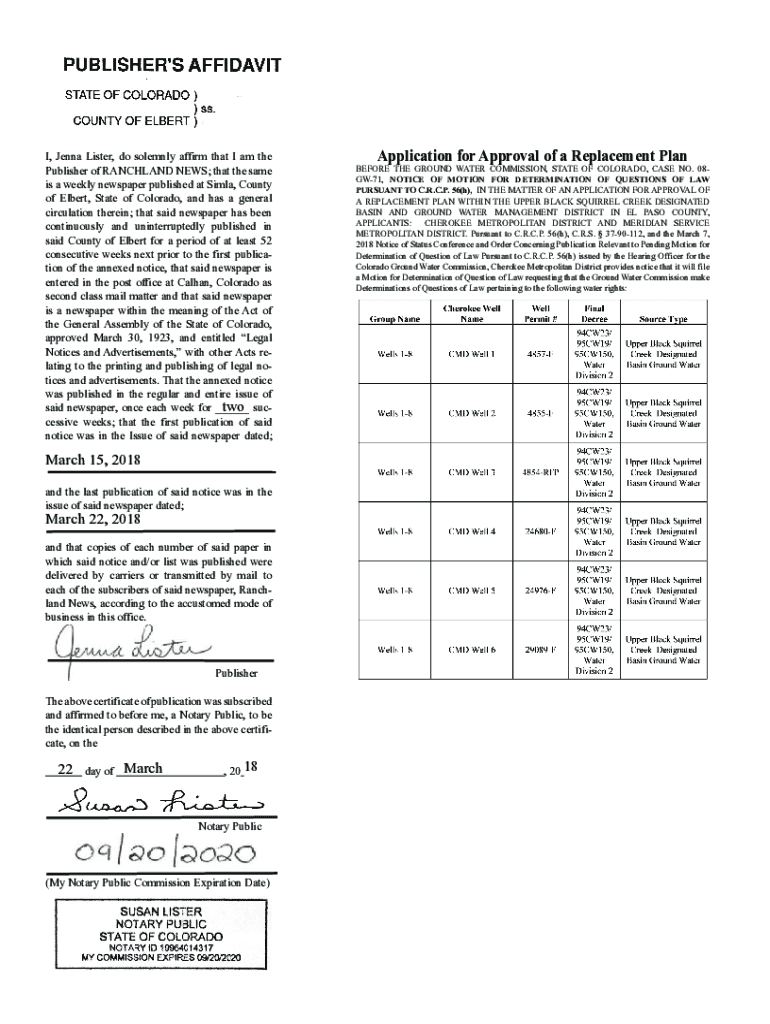 I, Jenna Lister, do solemnly affirm that I am the Publisher of RICHLAND NEWS; that the same is a weekly newspaper published at SIMCA, County of Elbert, State of Colorado, and has a general circulation