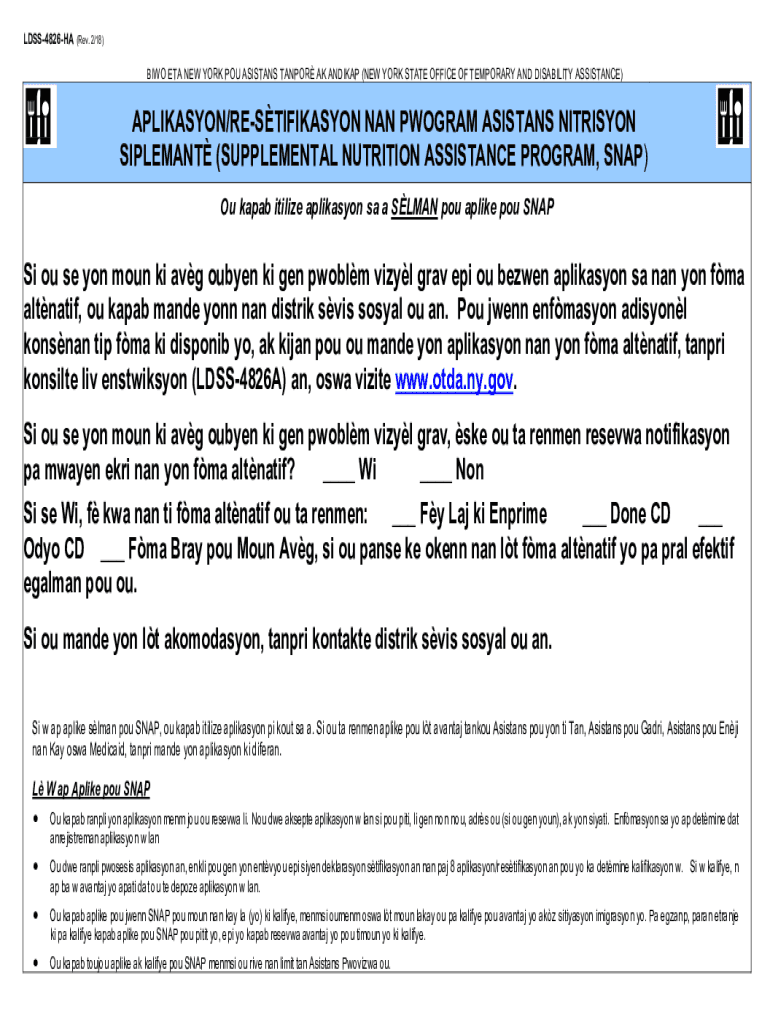 LDSS4826HA(Rev. 2/18)BIO ETA NEW YORK POU ASSISTANT TAN POR AK HANDICAP (NEW YORK STATE OFFICE OF TEMPORARY AND DISABILITY ASSISTANCE)APLIKASYON/RESTIFIKASYON NAN PROGRAM ASSISTANT NUTRITION