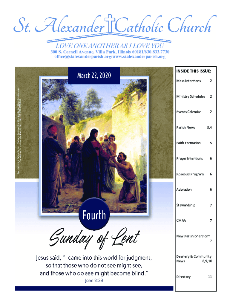 300 S. Cornell Avenue, Villa Park, Illinois 60181/630.833.7730 office@stalexanderparish.org/www.stalexanderparish.org INSIDE THIS ISSUE: Mass Intent ons2Ministry Schedules2Events Calendar2Parish News3,4Faith