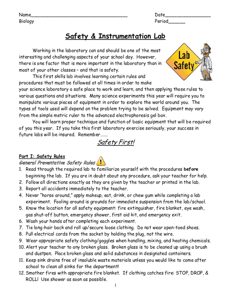 Name___ BiologyDate___ Period___Safety & Instrumentation Lab Working in the laboratory can and should be one of the most interesting and challenging aspects of your school day. However, there is one