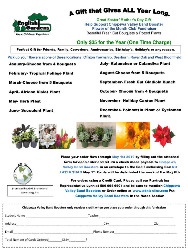 Beautiful Fresh Cut Bouquets & Potted Wantonly $35 for the Year (One Time Charge)